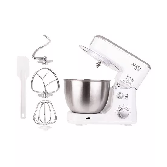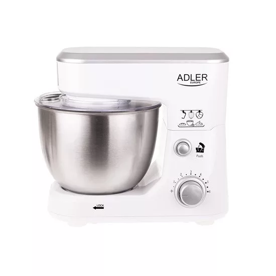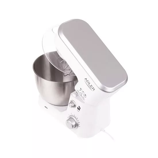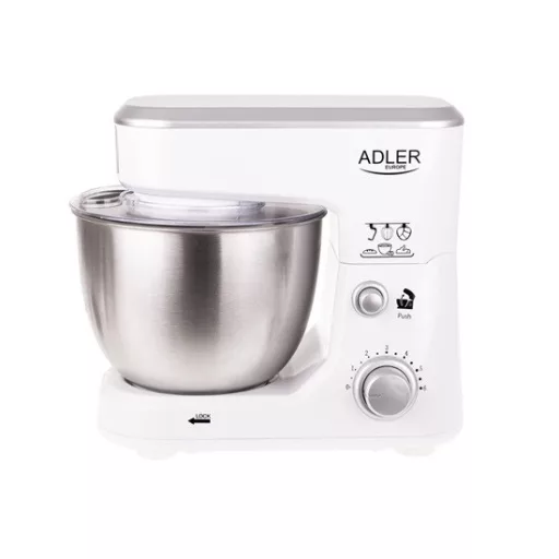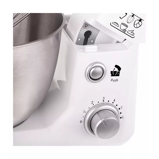 1000W teljesítmény-Kapacitás 4L-Rozsdamentes acél tál-6 sebesség fokozat-bolygó mozgásu mixelés-Cseppenés gátló-Biztonsági zár-Rozsdamentes acél habverő, keverő és dagasztó szár-Tapadókorongos talp