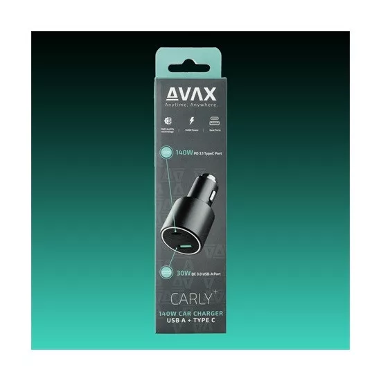 AVAX CC680B CARLY+ 140W Autós töltő USB-C (PD3.1) + USB A, fekete