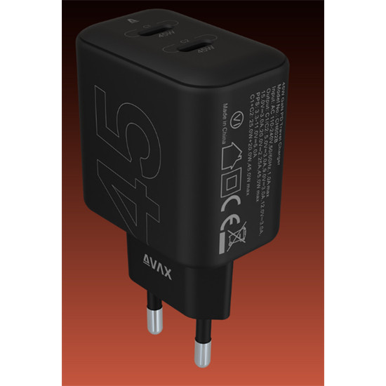 Az AVAX CH602 USB-C töltő adaptere két Power Delivery USB-C csatlakozóval rendelkezik, mindegyik port 45W teljesítményt nyújt. Ez a rendszer lehetővé teszi, hogy széles körű eszközöket tölts meg gyorsan és hatékonyan, miközben a kompakt méret a mobilitást is biztosítja. Együttes töltés esetén 25+20W töltést kapsz.