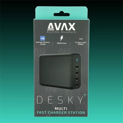 Az AVAX GaN asztali töltő 4 db USB-C töltőportnak köszönhetően több eszközt is egyszerre lehet tölteni, és mindegyik port akár 100W-os töltőként funkcionál, biztosítva a gyors töltést még a nagy teljesítményű eszközök számára is. Ezáltal lehetővé téve, hogy a 200W-os töltővel 4 laptopot is tölteni tudj.
