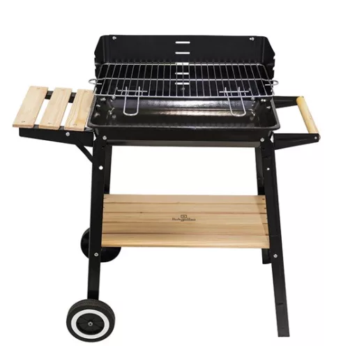 A grill gurítható, így könnyedén mozgatható a kertben vagy a teraszon. Emellett könnyen összeszerelhető, így gyorsan használatba veheted, és élvezheted a grillezés örömeit.