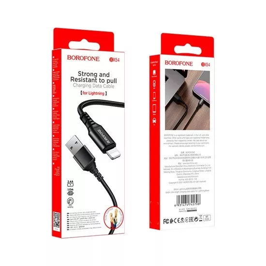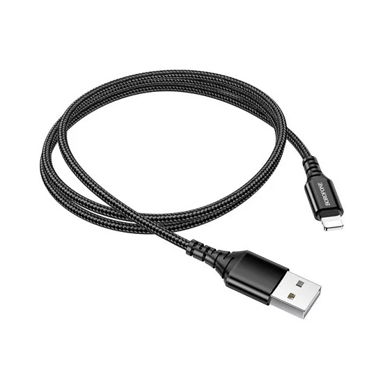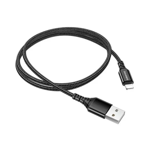 Borofone Bx54 100 cm hosszú, textil borítású lightning kábel. Kompatibilis minden Apple készülékkel, amelynek töltése lightning csatlakozóval történik.