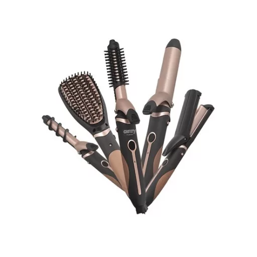 Teljesítmény 1200W-forgó vezezték-hőálló markolat és végek-5az1-ben hajformázó : hajegyenesítő kefe/Beach waves fej/hajkreppelő fej/hajsütővas 32mm/hajsütővas 19mm/hajformázó kefe fej/spirális göndörítő fej