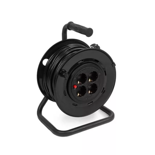 Masszív, nagyméretű dobbal szerelt kábeldob, amely alkalmas 25 méter hosszabbító kábel helytakarékos tárolására. A 4 db 250V-os hálózati aljzat gyerekvédelemmel van ellátva, így elkerülhetőek a gyermekbalesetek. A készülék hőkioldóval is rendelkezik, így megakadályozható, hogy a készülék melegedjen és túlterhelésnek legyen kitéve feltekert üzemeltetés esetén. Kérjük, ha lehetősége nyílik rá a hőkioldó biztosíték ellenére se használja a kábeldobot feltekert kábellel!
