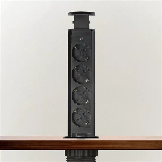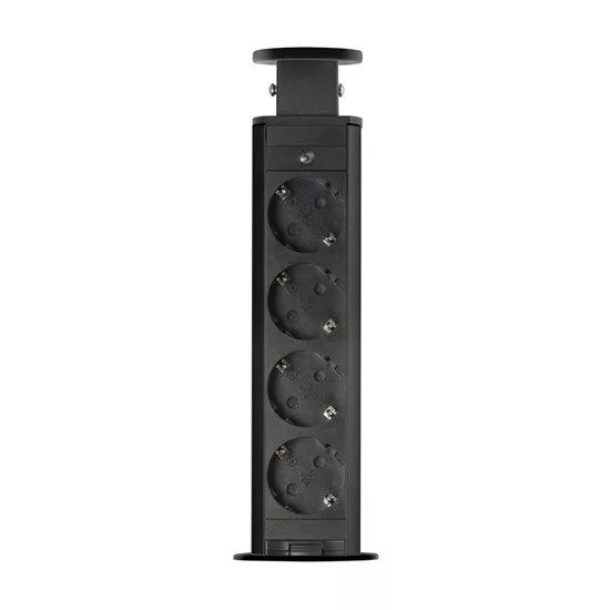 Süllyeszthető elosztó irodai és otthoni felhasználásra, fém házzal, 4 db gyermekvédelemmel ellátott aljzattal. Asztala, bútora legyen mindig elegáns és rendezett, mégis funkcionális. A rejtett elosztó kiváló megoldás lehet ha már például kész konyhával rendelkezik, de nincs elegendő konnektor a kívánt helyen. Ilyenkor falvésés és villamos hálózat bővítés nélkül, remek alternatíva lehet egy rejtett elosztó. Egy mozdulat és máris rendelkezésre áll 4 szabad konnektor. Ideális lehet olyan elektromos eszközökhöz, amit nem folyamatosan használunk, kenyérpirító, vízforraló... Ha használaton kívül vannak, a "töltőoszlop" egy mozdulattal elrejthető, ezzel is megkönnyítve például a takarítást, valamint rendezett, letisztult külsőt ad a helységnek.