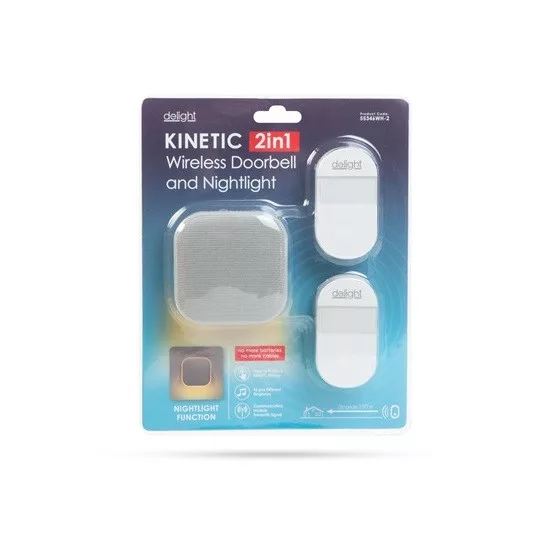 A Delight, elem nélküli csengők legújabb tagja, megújult dizájnnal és funkciókkal megérkezett! Kettő az egyben eszköz, amely használható hagyományos csengőként és fényszenzoros éjjeli fényként is. A vezeték nélküli csengő kapcsolója a dinamó elvén működik. A nyomógombos kapcsoló működtetéséhez nincs szükség semmilyen külső áramforrásra. A működéshez szükséges elektromos áramot a kapcsolóban található dinamó hozza létre. Az innovatív KINETIC - elem- és vezeték nélküli - technológiának köszönhetően nincs többé szükség elemre a termék működtetéséhez.