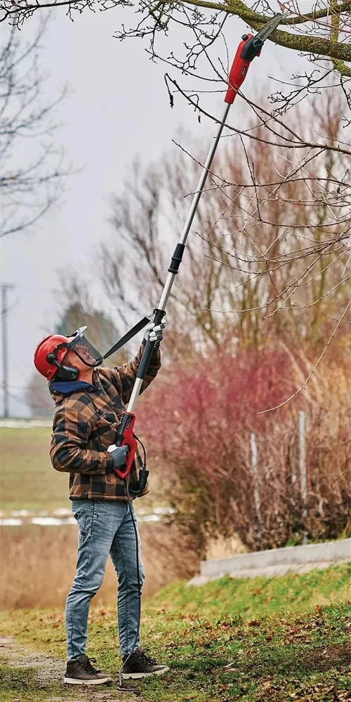 Az Einhell GC-EC 7520 T elektromos magassági ágvágóval még a magasabban lévő ágakat is gyorsan és egyszerűen levághatja – és ehhez még létrára sem kell állnia! A magassági ágvágó segítségével pillanatok alatt formába hozhatja a növényeket. A kihúzható alumíniumnyél optimális munkavégzést biztosít. Az ergonomikus munkavégzés érdekében a készüléket további gumírozott tartófelülettel látták el. A lánc megfeszítéséhez nem lesz szüksége külön szerszámra. A maximális kényelem érdekében a heveder állítható. A biztonságról az integrált kábelrögzítő gondoskodik. Az olajtartályon – amely az automatikus lánckenést biztosítja – található egy nagy méretű ellenőrző üveg, amelyen keresztül bármikor ellenőrizheti az olajszintet.