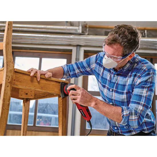 Az Einhell TC-DS 20 E deltacsiszoló egy könnyen kezelhető, 200 W teljesítményű készülék, amelyet fa, műanyag és fém csiszolására terveztek. Ez a hosszú üzemidejű csiszoló nem hiányozhat egyetlen ezermester műhelyéből sem! A csiszolópapírok formája különösen a szegletekkel taglalt, nehezen hozzáférhető helyeken biztosít könnyű munkavégzést: a csiszolótalp – melynek mindhárom oldala 93 mm hosszú – 3 különböző pozícióba forgatható. A fordulatszám-szabályozó elektronika lehetővé teszi, hogy a készülék teljesítményét mindig a megmunkálandó anyag tulajdonságaihoz igazíthassa. Rezgőkör: 2 mm. Rezgéstartomány: 12 000 – 22 000 rezgés/perc.