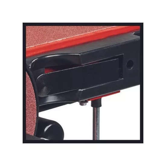 Az Einhell TC-US 380 asztali szalagcsiszoló egy 380 watt teljesítményű készülék, amelyet szalag- és tányércsiszoló funkcióival, illetve ütközővel felszerelt, dönthető szalagcsiszoló-berendezéssel láttak el. Az egyszerű szalagcserét a csiszolószalag centrírozását segítő rögzítőszerkezet biztosítja. A gyors csere érdekében a 150 mm átmérőjű tányért tépőzáras rögzítéssel látták el. A stabil, csavarodásmentes, dönthető és jól látható szögbeosztással ellátott alumíniumasztal mindkét csiszolóegységhez használható, és ezáltal rendkívül sokoldalú felhasználási lehetőséget biztosít. A keresztütköző -60° és +60° között dönthető. A maximális stabilitásról a négy robusztus, rezgéscsökkentett gumiláb, a munkaterület tisztaságáról pedig a porelszívó-adapter gondoskodik. A készüléket csiszolószalaggal és -koronggal együtt vásárolhatja meg.