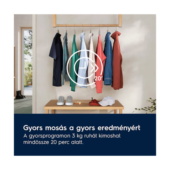 Gyorsprogramon percek alatt, kíméletesen moshatja ki ruháit. 3 kg szennyest mindössze 14 perc alatt moshat tisztára.