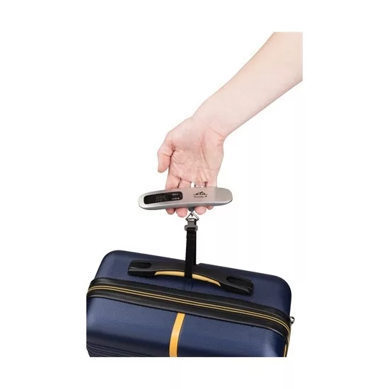 A Travello utazási mérleggel elkerülheti a felesleges extra díjakat a repülőtéren. Az egyedi célsúly beállítási funkcióval beírhatja a kívánt súlyt a mérleg memóriájába. Ha a poggyász nehezebb a beállított súlynál, a kijelző pirosan világít.