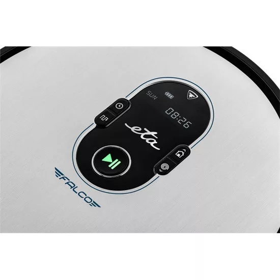 Az ETA Falco Smart porszívó nagy teljesítményű és extra hosszú élettartamú digitális motorral rendelkezik. A mindössze 7,8 cm vastagságú kialakításának köszönhetően problémamentesen porszívózik még bútorok és kanapék alatt is. Ráadásul a tisztítás után automatikusan visszatér a töltőállomásra. A kiváló minőségű Li-ion akkumulátorral felszerelt robot (14,4 V, 2400 mAh) hosszú élettartammal büszkélkedhet, amely akár 120 percet is elérhet. A töltőállomásra csatlakozva kb. 5 óra alatt teljesen feltöltődik.