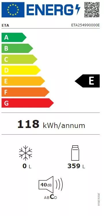Az ETA254990000E egyajtós hűtőszekrény minden modern konyhába illeszkedik. 359 literes űrtartalma egy nagyobb  családnak is megfelelő. Alacsony fogyasztásának köszönhetően az E energiaosztályba tartozik, így költséget takarít meg.