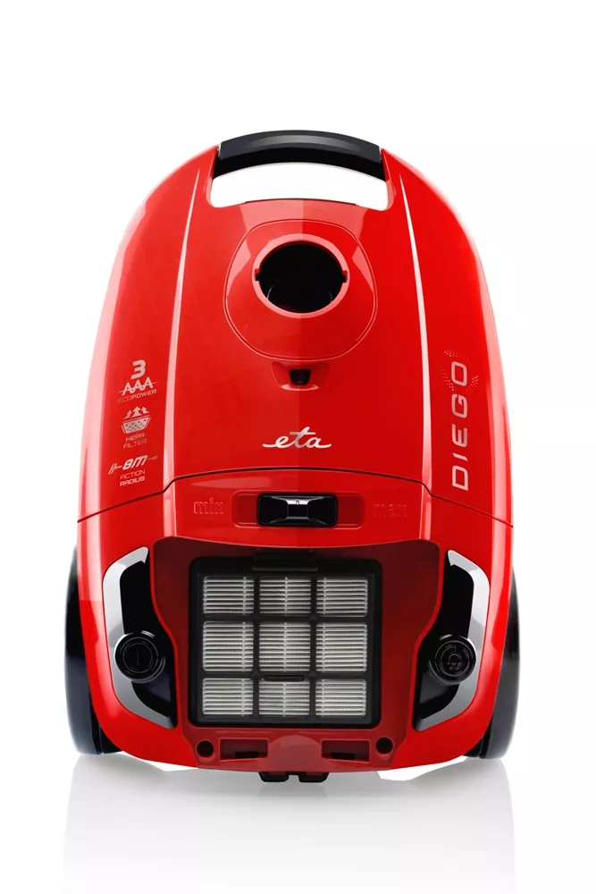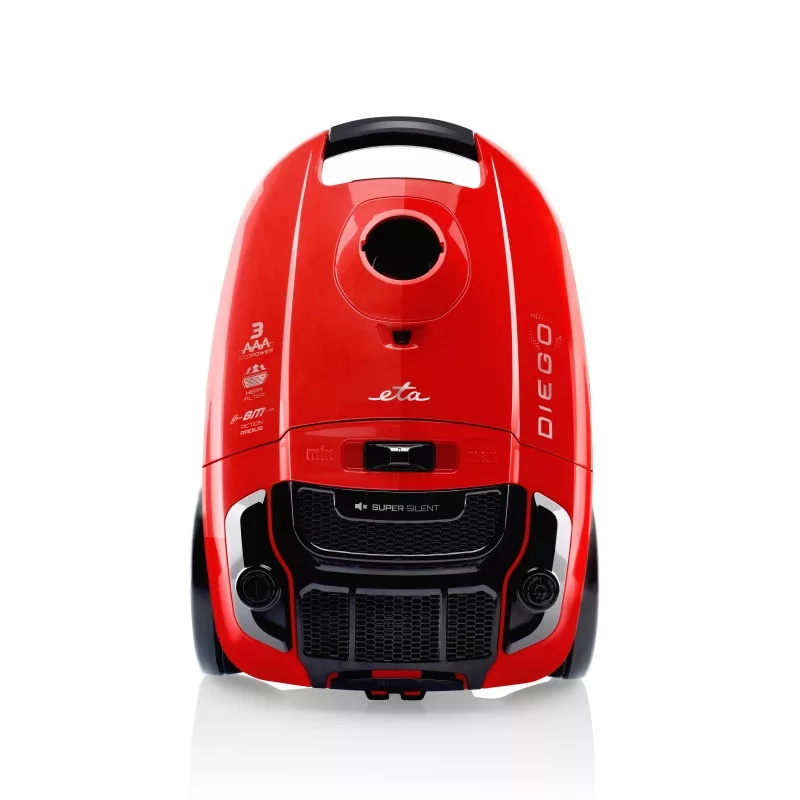 Az ETA Diego porzsákos porszívó biztosan lenyűgözi már első látásra a gyönyörű, piros kialakításával. Legnagyobb erősségeit azonban nem külsejében tartogatja.