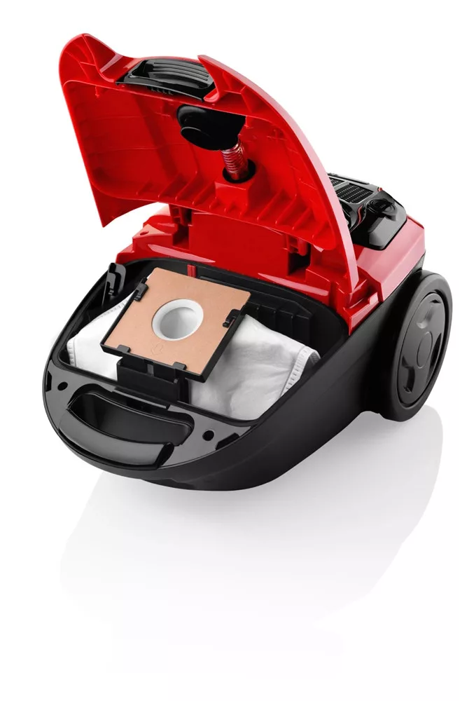 Kemény padlón és parkettán alacsonyabb teljesítménnyel is tökéletesen működik, a szőnyegen pedig kipróbálhatja a porszívó teljes teljesítményét. A porszívó a megtelt porzsák esetén figyelmeztet, és hiányzó porzsáknál beépített biztonsági biztosíték nem teszi lehetővé a porzsák nélküli porszívózást.