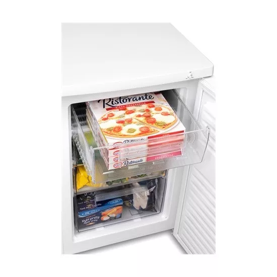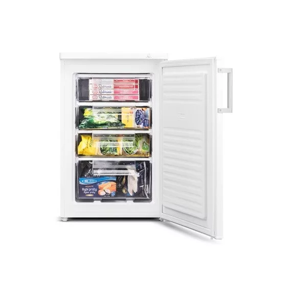 Négy átlátszó fiók garantálja az élelmiszerek tiszta tárolását. A mechanikus szabályozás nagyon egyszerű, atermosztát segítségével könnyedén beállíthatja a kívánt hőmérsékletet. A fagyasztó a rendkívül hatékony négycsillagos fagyasztási osztályba tartozik, akár 4 kg élelmiszert 24 óra alatt lefagyaszt, és teljesen lefagyasztva akár 12 órán keresztül is megőrzi. áramszünet esetén.