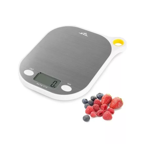 Az ETA Grami konyhai mérleg rozsdamentes mérő felülettel felszerelt, mely képes akár 8 kg kapacitással és 1 g pontossággal mérni. Többféle egység állítható be rajta, mint pl. gramm, font, uncia, víz, vagy tej.