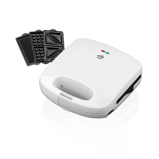 Az ETA Tampo 4156 90000 3 az 1-benkombináció. Finom szendvicseket, ízletes gofrit, vagy sokféle grill ételt elkészít. 3 cserélhető lapot (háromszögletű szendvics, gofri és grill) tapadásmentes felülettel tartalmaz, amelynek köszönhetően az étel nem ég meg.