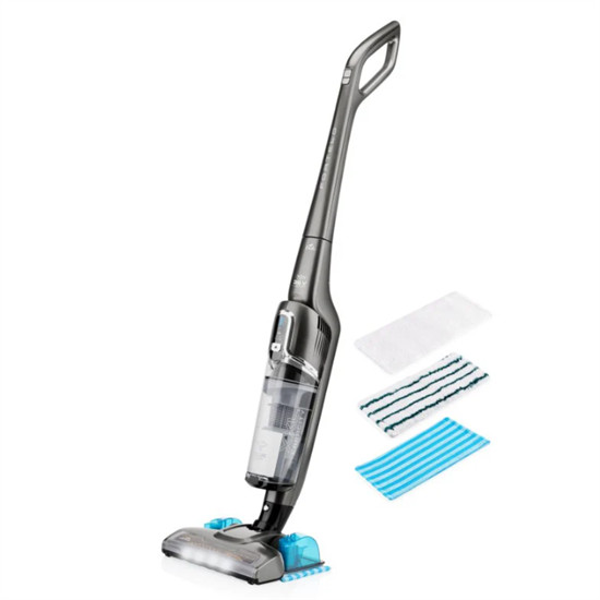 Erőteljes 2 az 1-ben álló porszívó felmosó funkcióval, akár 50 perces működési idővel. Elektromos forgókefe, 2 fokozatú szívóerő és LED világítás