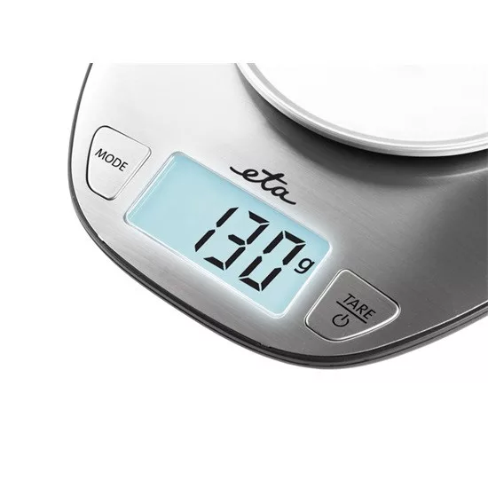 Az ETA Dori ETA677890000 konyhai mérleggel a hozzávalókat grammban, vagy fontban, akár 1 gramm pontossággal mérheti le. Tej- és vízmérő programmal ellátott, mellyel nagy pontossággal mérhet akár mililiterben, vagy unciában.