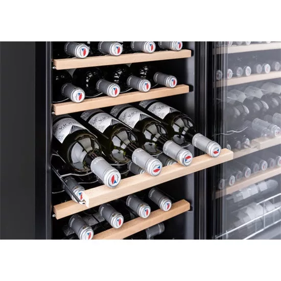 A 74 literes össztérfogatot hat krómozott, fa előlappal ellátott polc osztja fel. Ezenkívül a palackokat belső LED fény világítja meg, amely energiatakarékos és nem termel nem kívánt hőt.
