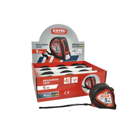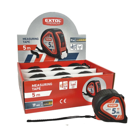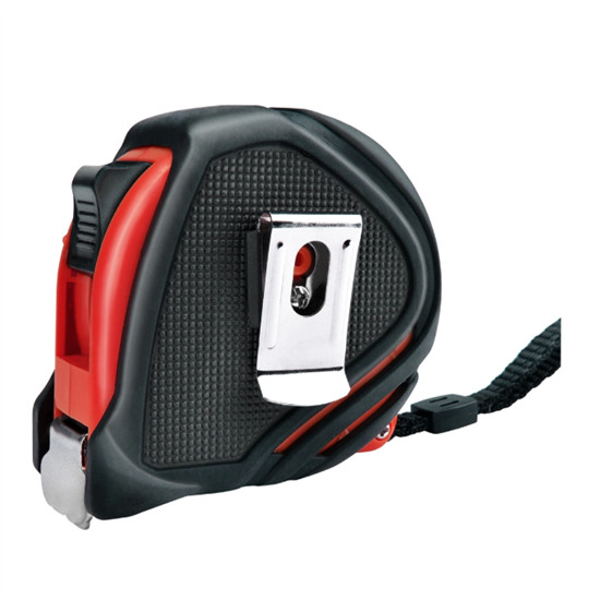 A gumiborítás és az ergonómikus csúszásgátló elemek megvédik a mérőszalag műanyag testét.