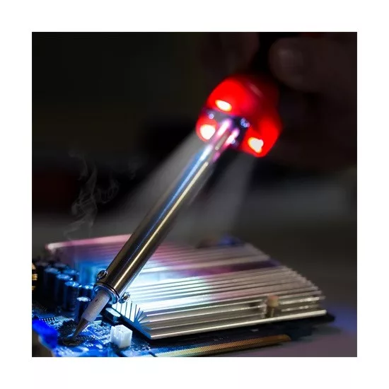A Fahrenheit legújabb forrasztópákájával könnyen és hatékonyan forraszthat elektronikai alkatrészeket. A beépített LED világítás kellő fényerővel világítja meg a munkadarabot, így rossz fényviszonyok között is hibátlan forrasztást végezhet. A kompakt méretének köszönhetően nem foglal helyet az asztalon, mégis rendelkezik minden olyan funkcióval amire szüksége lehet. A páka hosszú kábele garantálja a kényelmes munkavégzést.