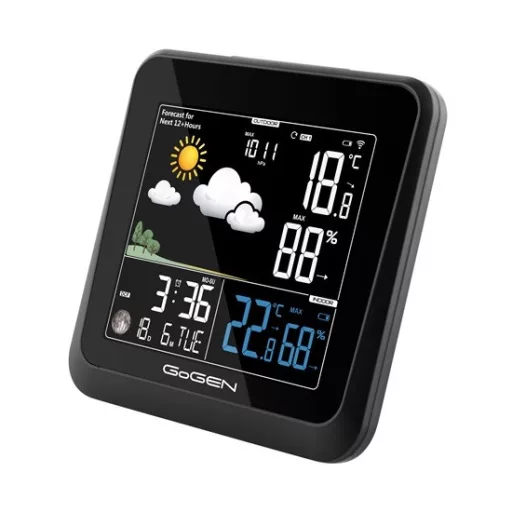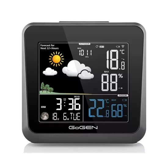 A GoGEN ME3236 időjárás állomás tiszta megjelenítésével is lenyűgöz. A minőségi kivitelezés miatt ez a készülék megfelelő kiegészítő otthona vagy irodája számára. Gyakorlati funkció a pontos időjelző, amelyet a DCF 77 rádiójel vezérel . Az ébresztőóra és aktuális dátum jelzésének köszönhetően az időjárás-állomás gyorsan megtalálhatja a helyét az éjjeliszekrényen.