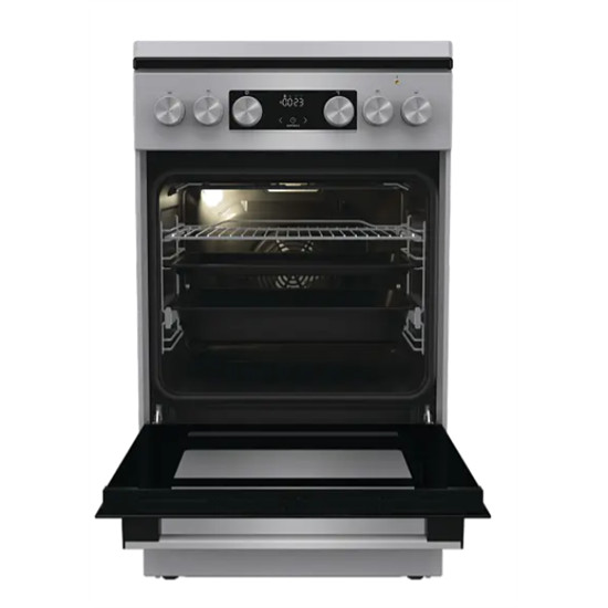 A Gorenje tűzhelyek megnövelt sütőfelületet és extra nagy tepsiket kínálnak. Az innovatív megoldások lehetővé teszik az optimalizált energiafogyasztást és egyenletesen elkészített ételeket, függetlenül a mennyiségtől. A teljes sütőszélesség hatékonyan használható, míg a kiváló technológia biztosítja, hogy az étel minden szinten egyenletesen készüljön el.