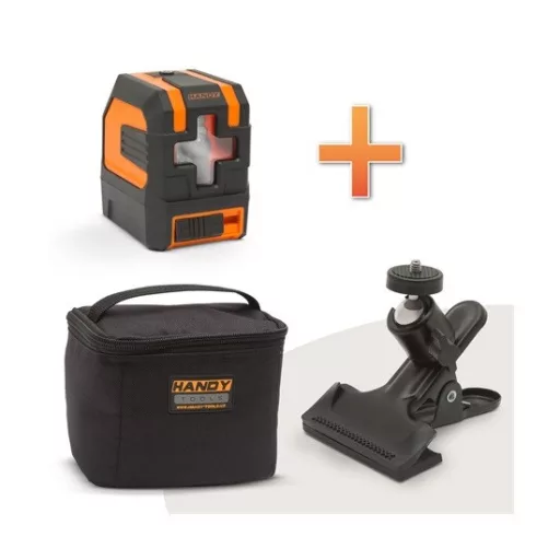 Ennek az új Handy lézer szintezőnek a segítségével egyszerűen rávetíthet a falra, padlóra, mennyezetre egy lézerkeresztet. Az eszköz számos területen nyújthat segítséget, legyen szó egy egyszerű kép felrakásáról, vagy akár csempézésről, gipszkartonozásról, szegélyek rögzítéséről. Rögzítőcsipesz vagy állvány segítségével stabilan rögzítheti a készüléket, amíg a lézer vonalában elvégzi a szükséges tevékenységet, pl.: jelölés, fúrás, rögzítés. A csomagolásban található egy praktikus hordozótáska és egy rögzítésre szolgáló erős, univerzális csipesz is.