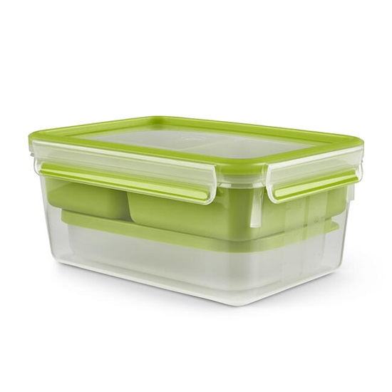 A MASTERSEAL TO GO XLebédszállító doboz a tömítésnek köszönhetően tovább frissen tartja az élelmiszert. Ezen kívül 100 %-osan szivárgásmentes, higiénikus és biztonságos. 100%-osan hordozható, az étel kényelmes behelyezésével - ideális az egészséges ételek szállításához.