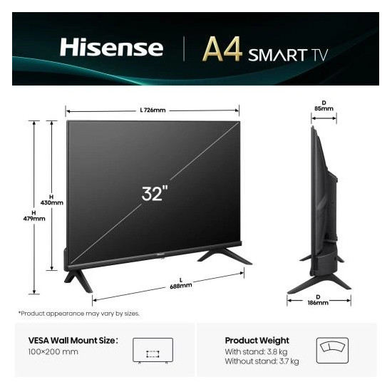 - Képátló mérete (inch): 32 in