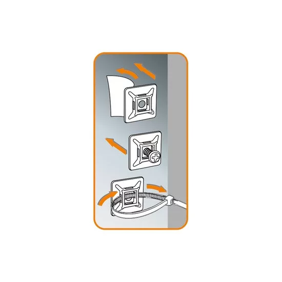 A kábelkötegelő talpba helyezett kábelkötegelő segítségével könnyedén különböző felületekhez rögzítheti a kívánt tágyakat