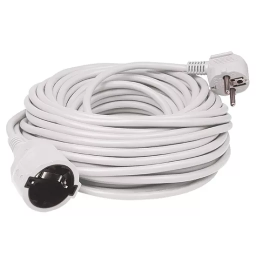 • Az NV 2-30/WH/1,5 Hosszabbító 30 méter hosszú, fehér színű H05VV-F 3G1,5 mm2 kábellel ellátott, melynek végén pipa alakú dugó és egyenes lengő aljzat található.