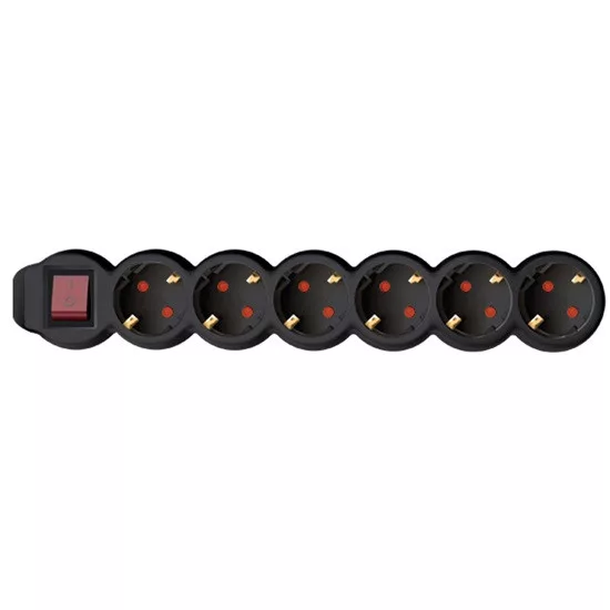 • Az NV 6K-3/BK/1,5 Kapcsolós hálózati elosztó 6 db aljzattal ellátott, melyet egy fő kapcsolóval áramtalanítani tud.