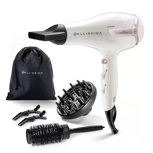 2300 W teljesítményű ionos hajszárító, amely megőrzi a haj nedvességtartalmát, és csökkenti a szárítás közbeni göndörödést.