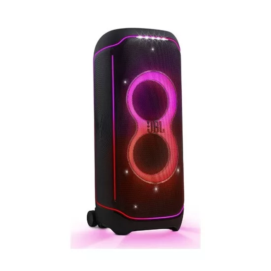 A JBL PartyBox Ultimate hangja akkora helyet tölt be, amekkora a rendelkezésére áll, kiváló eredeti JBL Pro Sound hanggal, amelyet Wi-Fi-n keresztüli magával ragadó Dolby Atmos élménnyel párosít. Mert a bulin mindenki szereti az erőteljes hangzást.. Még maximum hangerőnél is kristálytiszta hangzás mellett, nyűgözd le a vendégeket egy hatalmas, lélegzetelállító fényshow-val: magával ragadó fények, szuper fényprogramok és stroboszkóp effektus, amelyek szinkronban mozog az ütemmel. Stream-eld a kedvenc parti lejátszási listád, vagy akár színpadra is léphetsz, ha csatlakoztatsz akár két mikrofont és egy gitárt is a Partybox-hoz. Hozd létre a saját partidat a JBL PartyPad™ szórakoztató interaktív effektusainak segítségével. Egy nem elég? Változtasd a bulit koncertté a vezeték nélküli párosítás és a több hangszórós kapcsolat segítségével a JBL One alkalmazásban. A fröccsenésálló JBL PartyBox Ultimate mindig a legjobb hangzásra kalibrálja magát, függetlenül attól, hogy hol használod. Gondolj a valaha volt legtutibb bulira, és szorozd meg kettővel: A JBL PartyBox Ultimate erre készült.