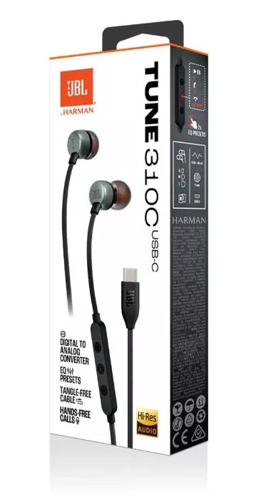Bemutatjuk a JBL Tune 310C USB-C fülhallgatót. Könnyű, kényelmes és kompakt. Egy pár 9 mm-es dinamikus meghajtó erőteljes JBL Pure Bass Sound hangzást ad, míg a High-Resolution Audio támogatás kiváló hangminőséget biztosít. Az USB-C kapcsolat sokféle eszközzel, például számítógépekkel, mobilokkal és játékeszközökkel. Ezenkívül a gubancmentes lapos kábelen elhelyezett háromgombos távirányítóval vezérelheted a zenelejátszást és a hangerő-beállítást, az EQ-beállításokat, valamint a beépített mikrofonnal menet közbeni hívásfogadást. Mindezek miatt a JBL Tune 310C USB-C a mindennapi társad lesz a munkahelyeden, otthon és úton.