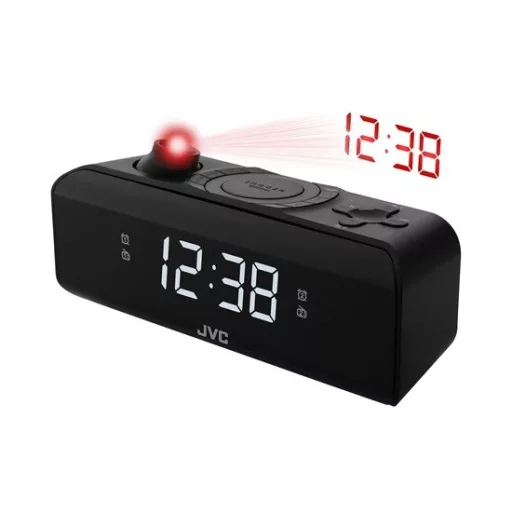 A JVC RA-E211B Rádiós ébresztőóra első ránézésre elegáns dizájnnal és nagy LED kijelzővel érdekes megjelenésű.