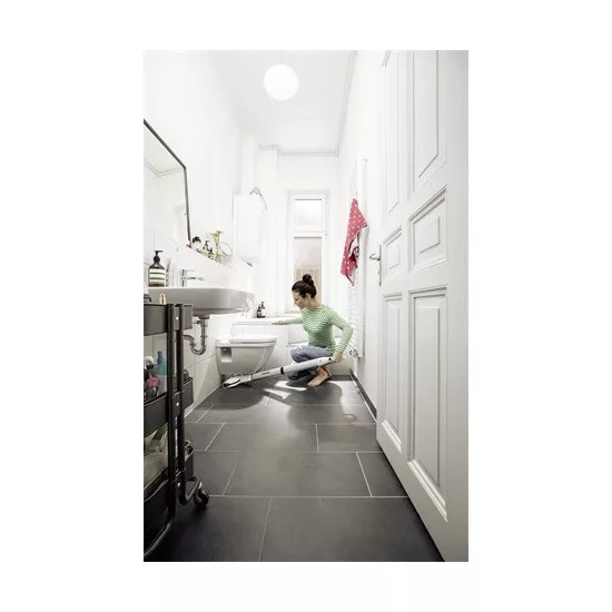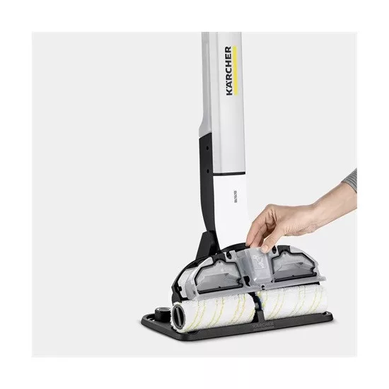 A foltok és fröccsenések eltávolítása egészen a peremig - vödör vagy fáradhatatlan súrolás nélkül. Nem lehetséges? Gondolja újra! A két tartályos EWM 2 vezeték nélküli felmosógép ezt lehetővé - és a hagyományos felmosókat feleslegessé teszi. A forgó hengereket folyamatosan friss vízzel nedvesíti, míg az összegyűjtött szennyeződés a szennyvíztartályba kerül. A készülék akár 20%-kal tisztább padlót hagy maga után, mint a hagyományos felmosók*. Karcsú formájának és rugalmas forgócsuklójának köszönhetően az EWM 2 nem csak a bútorok alá fér be könnyedén, de tárolási helyet is megtakarít. A padlószárítási idő mindössze körülbelül két perc, így tökéletesen alkalmas minden típusú keménypadlón (pl. csempe, parketta, laminált padló, PVC és vinil) való használatra. A nagy teljesítményű lítium-ion akkumulátor kb. 20 perces üzemidővel rendelkezik. Ez lehetővé teszi, hogy akár 60 m² padlófelületet is megtisztítson a készülékkel.