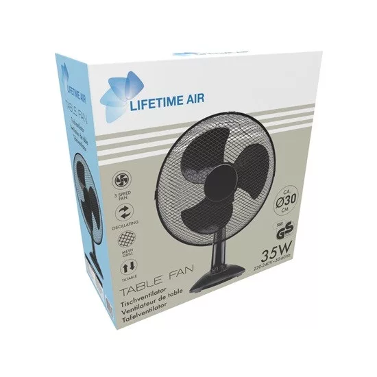 Szeretnél gyorsan felfrissülni a lakásban? Akkor ez a Lifetime Air asztali ventilátor tökéletes választás számodra. A ventilátor mindössze 46 centiméter magas, és praktikus talppal rendelkezik, így könnyedén elhelyezheted az éjjeliszekrényeden vagy az íróasztalodon.
