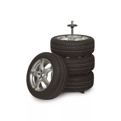 Tárolja éppen nem használt gumiabroncsait szabályosan és óvja meg őket a deformálódástól. Ennek az állványnak a segítségével a téli vagy a nyári kerekeket kis helyen tárolhatja. Az oszlopon lévő tartók biztosítószeggel rögzíthetőek, így véletlenül sem érhetnek egymáshoz a kerekek, ezáltal megakadályozható a legalsó gumi deformálódása. Az állvány könnyen és gyorsan összeszerelhető és szétszedhető ha nincsen rá szüksége.