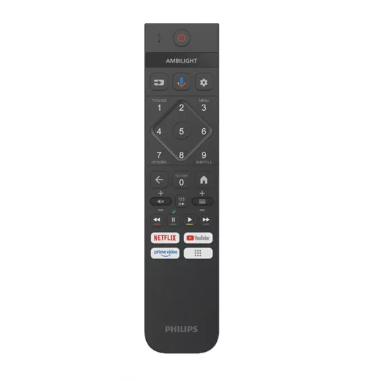 Az integrált Bowers & Wilkins hangrendszer elegánsan néz ki – a négyoldalas Ambilight pedig lenyűgöző hangulatvilágítást teremt kikapcsolt képernyő esetén. A karcsú fém TV-távirányító vezeték nélkül töltődik, és mozgásérzékelős háttérvilágítással rendelkezik. Csomagolásunk FSC-tanúsítvánnyal rendelkező újrahasznosított kartonból készült, a betétlapok pedig újrahasznosított papírra vannak nyomtatva.