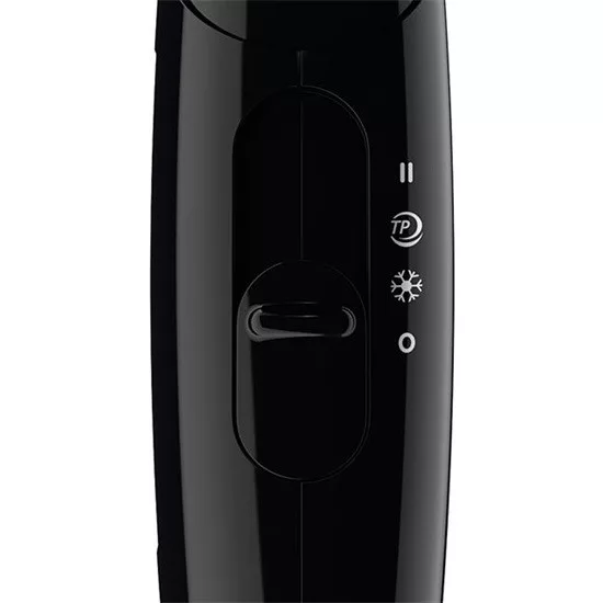 A gyors levegőbeállítás (II) nagyobb hőmérsékletet és erőteljesebb légáramlást biztosít. Kis mérete ellenére 1200 W-os teljesítményt biztosít, így Ön hatékonyan és kíméletesen száríthatja meg a haját.