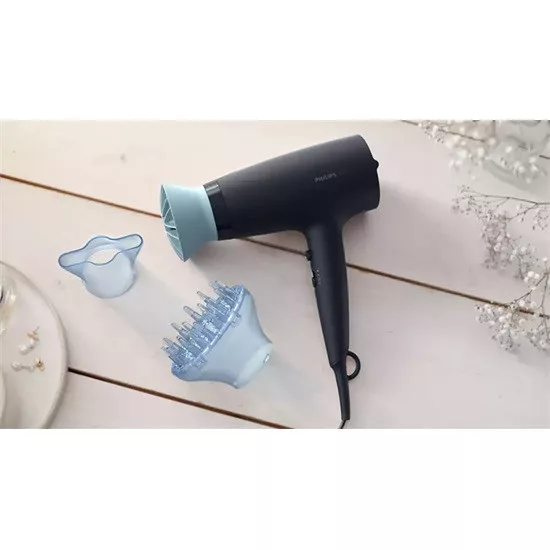 Az egyedülálló kialakítású ThermoProtect tartozék hatékonyan keveri a meleg és hideg levegőt a mindennapos ápoláshoz.