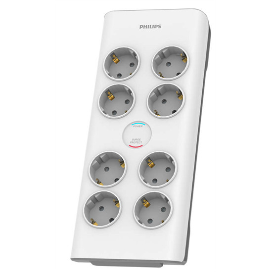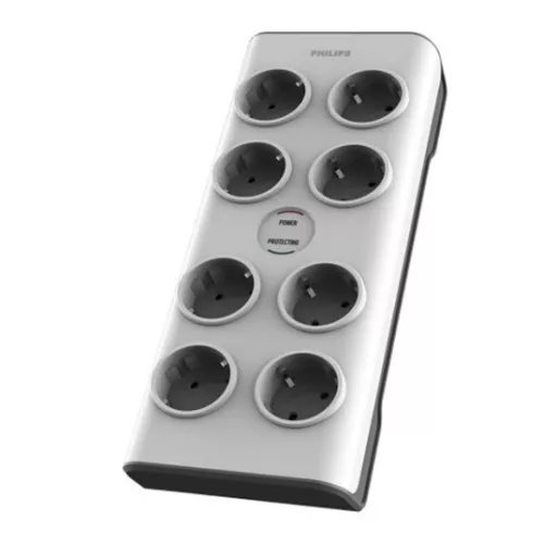 8 földelt Schuko-csatlakozó, 2 m fonott tápkábellel. Tervezésének köszönhetően kiváló a teljesítménye, és megvédi az eszközöket a túlfeszültségtől. Automatikusan lekapcsolja a rendszer áramellátását, így nyújtva védelmet a határt meghaladó későbbi túlfeszültség ellen.