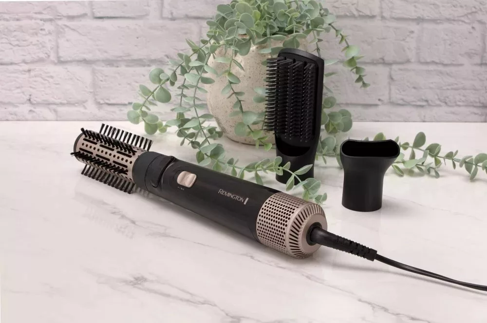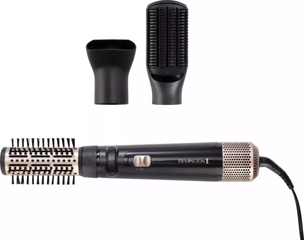 A Remington Blow Dry & Style forgófejes meleglevegős hajformázó (1000W) az ideális "egylépéses" hajformázó megoldás otthon vagy útközben. Erőteljes, de kíméletes légáramlása szárítás közben ápol, és az ionos kondicionáló gondoskodik a gubancolódásmentes frizuráról. A három cserélhető tartozék a többirányú forgó mozgással együtt lehetővé teszi, hogy kézben tartsd a hajformázást – hajhossztól vagy hajtípustól függetlenül. A puha sörtéjű körkefe megemeli a hajtöveket és megformázza a hajvégeket, míg a lapos kefe kisimítja a hajat a ragyogóan fényes végeredmény érdekében.