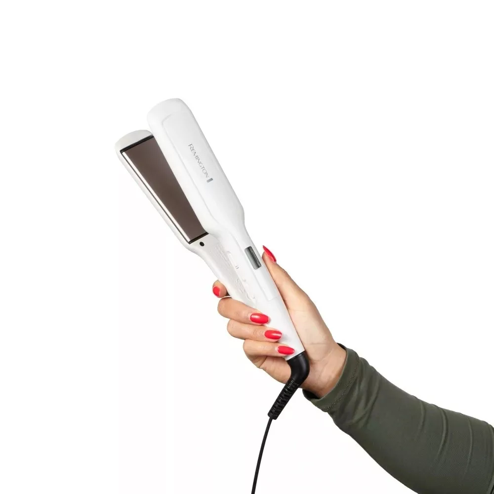 A Remington Pro-Ceramic Extra széles lapos hajsimítót 77%-kal szélesebb simítólapokkal* úgy tervezték, hogy több hajat fogjon át egyetlen áthúzással, a gyorsabb formázás és az egyenletesebb végeredmény érdekében. A 150-230 °C közötti 9 digitális hőmérséklet-beállítással pontosan a haj típusának megfelelő hőmérsékletet választhatod ki. A fejlett kerámia-ultra bevonatú simítólapok 75%-kal simábbak** a könnyed siklás és a ragyogóbb végeredmény érdekében. Hideg állapotból mindössze 15 másodperc alatt felmelegszik, így kevesebb időt kell várakozással töltened, és több időt fordíthatsz kedvenc frizurád elkészítésére.