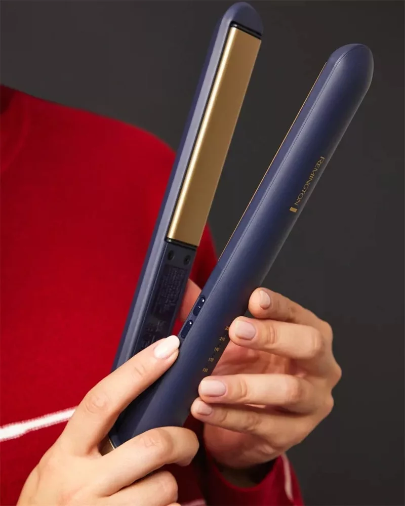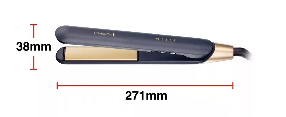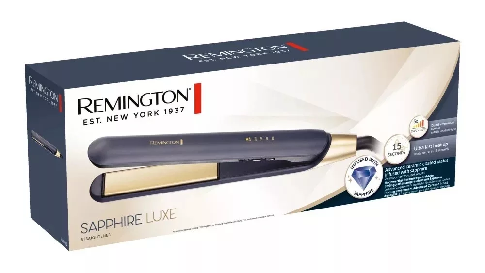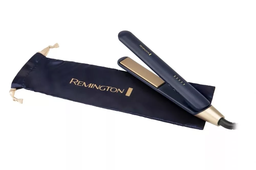 A Remington Sapphire Luxe hajsimítóval egy csipetnyi luxust vihetsz hajformázási rutinodba. A pezsgőszínű elemekkel díszített, elegáns mélykék kivitelű hajsimító zafírral dúsított, fejlett kerámia bevonatú simítólapokkal rendelkezik, amelyek 2-szer simábbá* teszik a hajat a gyönyörű végeredményért. Az öt praktikus beállítással rendelkező digitális hőmérséklet-szabályozó lehetővé teszi a hajtípusnak megfelelő hőmérséklet kiválasztását. A hajformázás során az ívelt burkolat megkönnyíti a loknik és hullámok, valamint az egyenes fazonok kialakítását, míg a rugalmas simítólapok egyenletes nyomást fejtenek ki a hajra, így a hajtövektől a hajvégekig tökéletes eredményt érhetsz el.