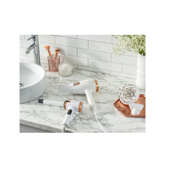 A 2200 W-os, nagyteljesítményű motor gyors szárítást és hatékony hajformázást biztosít a professzionális szintű eredmények érdekében, az otthona kényelméből.